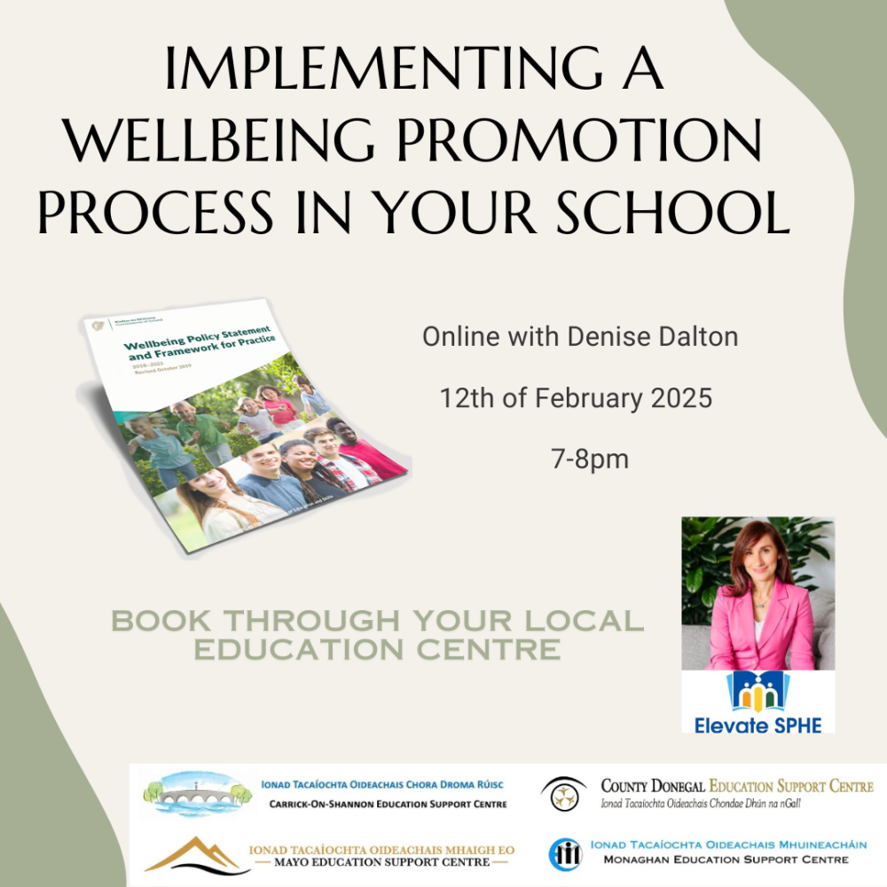 By 2025, Schools and centres for education are asked to include wellbeing promotion as a focus for their School Self-Evaluation (SSE). This should involve the development, implementation and review of wellbeing promotion in their schools, which includes tracking impact.