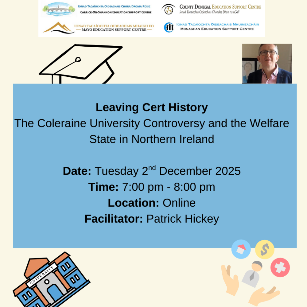 This webinar is hosted by Donegal Education Support Centre. The information you provide when registering will be shared with the host centre and the centre through which you booked and can be used and shared by them in accordance with their Terms and Privacy Policy, which is available on their website.