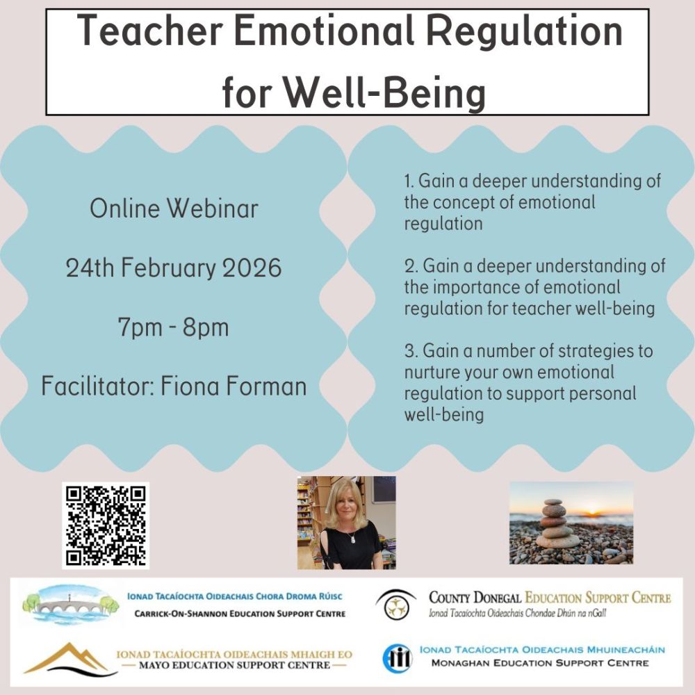 This webinar is hosted by Monaghan Education Support Centre. The information you provide when registering will be shared with the host centre and the centre through which you booked and can be used and shared by them in accordance with their Terms and Privacy Policy, which is available on their website.