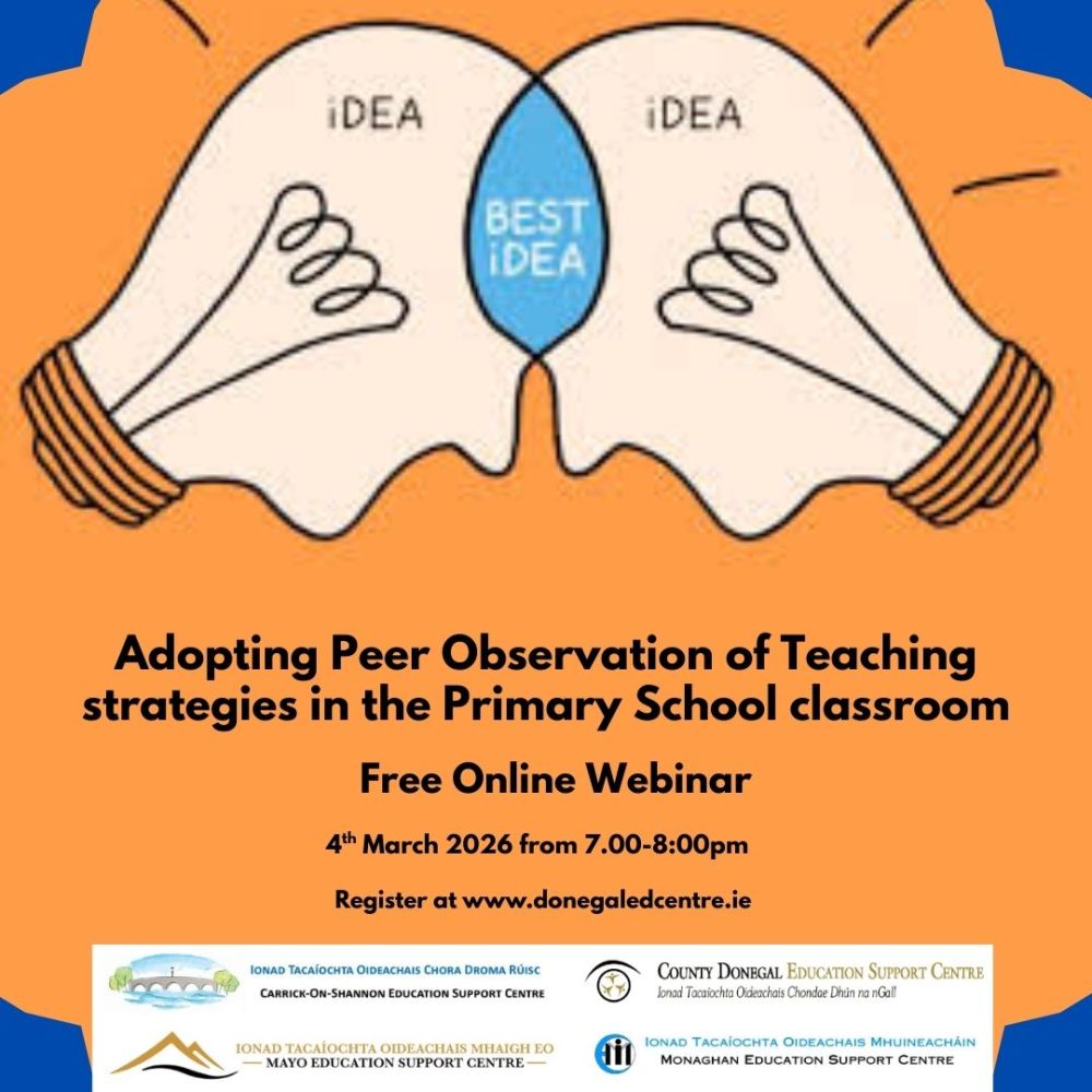 This webinar is hosted by Donegal Education Support Centre. The information you provide when registering will be shared with the host centre and the centre through which you booked and can be used and shared by them in accordance with their Terms and Privacy Policy, which is available on their website.