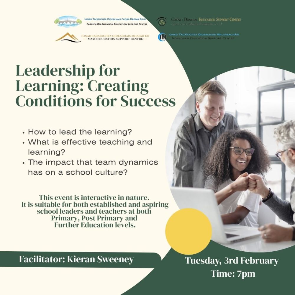 This event is interactive in nature. It is suitable for both established and aspiring school leaders and teachers at both Primary, Post Primary and Further Education levels.
