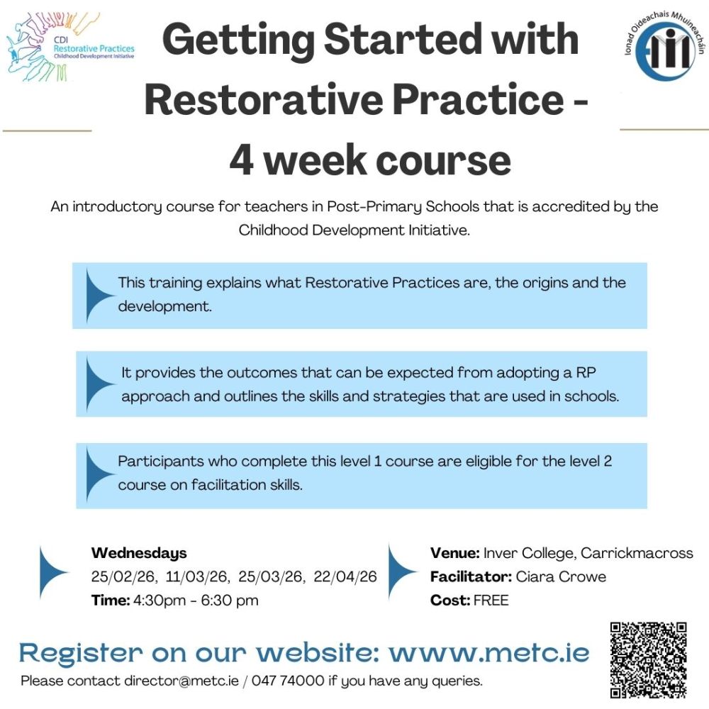 Getting started with Restorative Practice: An Introductory Course for Teachers in Post-Primary Schools (In Person)