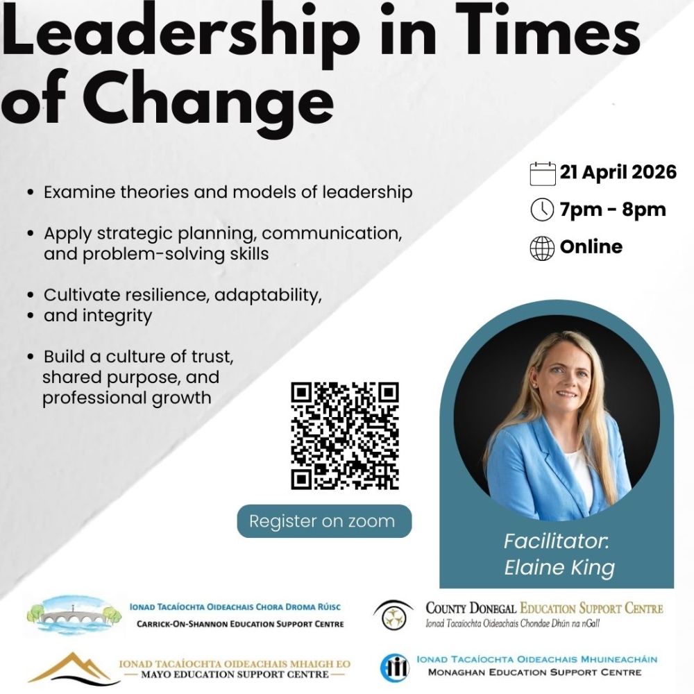 This webinar is hosted by Monaghan Education Support Centre. The information you provide when registering will be shared with the host centre and the centre through which you booked and can be used and shared by them in accordance with their Terms and Privacy Policy, which is available on their website.